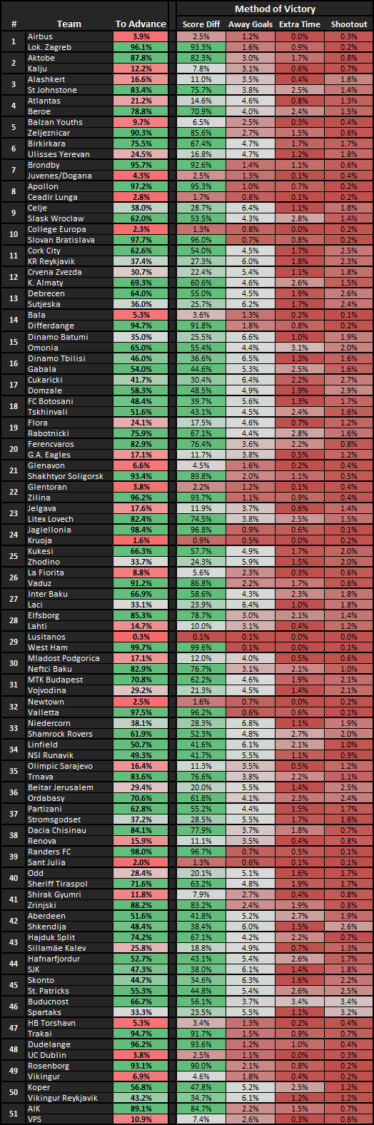 The draw is over and the groups are set. After 5,000 simulations, this is where we project out all the teams in the Europa League. We will update this after every two match days. For individual game predictions go to Europa League Game Predictions.