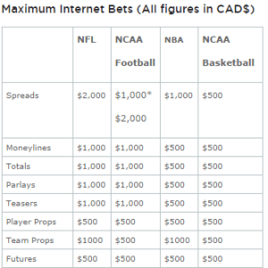 On the other hand, there is a lot to like in that the minimum bet is only one dollar. The maximum bet varies by the type of bet you are making, but it is generally anywhere from C$500 to C$2,000. This is well within reasonable means for any reasonable recreational bettor so I’m not going to knock Bodog for their maximum limits.