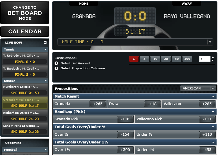 The instructions are simple and also found right on the screen. First, you select the amount that you want to wager and then you select your proposition. The one thing that is a little frustrating across a variety of live platforms is that the propositions come and go very quickly as there is a lot of changes in the games. Sometimes it gets a little bit frustrating trying to put in a bet only to find out that the proposition has closed or the line moved.