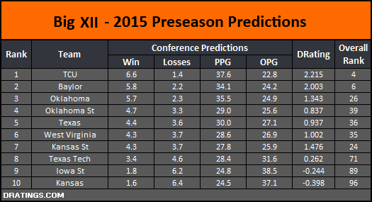 Big XII 2015 Preseason Conference Projections