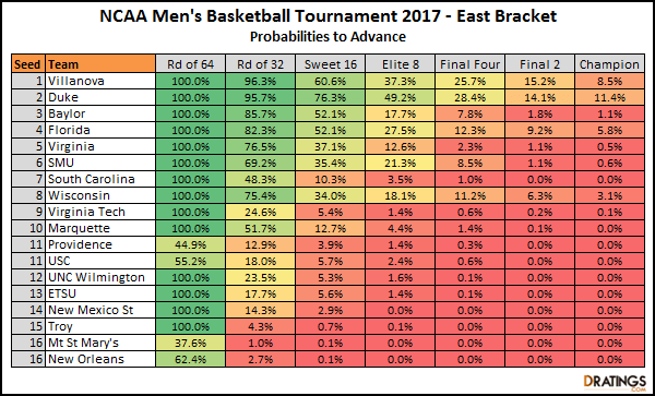 Home » 2017 NCAA Basketball Tournament Projections » 2017 East Bracket