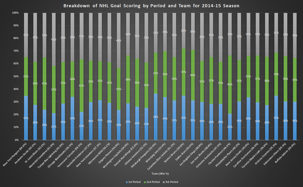 For 2014-15 season, a breakdown of period goal scoring by team (winning percentage in parentheses)