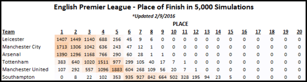 EPL Simulation Top Spots - Feb 9, 2016
